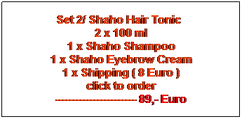 کورس کامل تتکون من 2 سائل الشعر و شامبو شاهو و کریم الحواجب  و الشحن ( لحد 8 یورو من ثمن الشحن  الارسال )  بمبلغ 89  یورو فقط